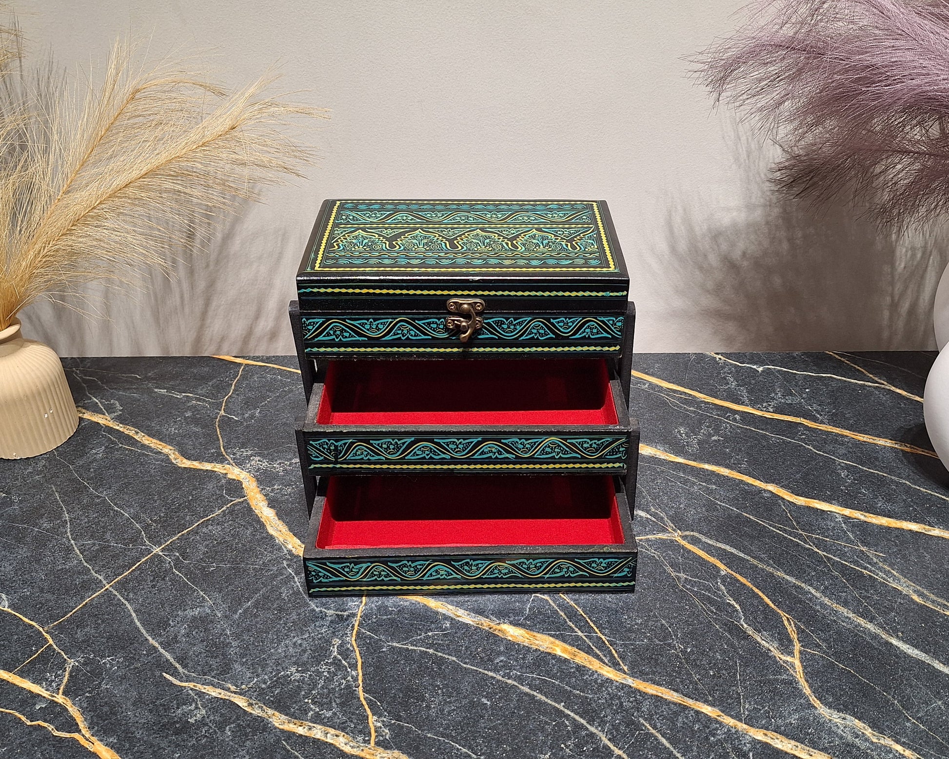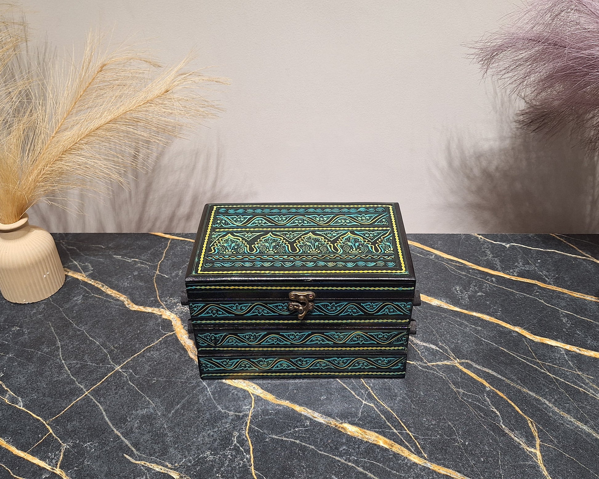 An elegant wooden jewellery holder box crafted to keep your precious pieces organized, safe, and beautifully displayed.