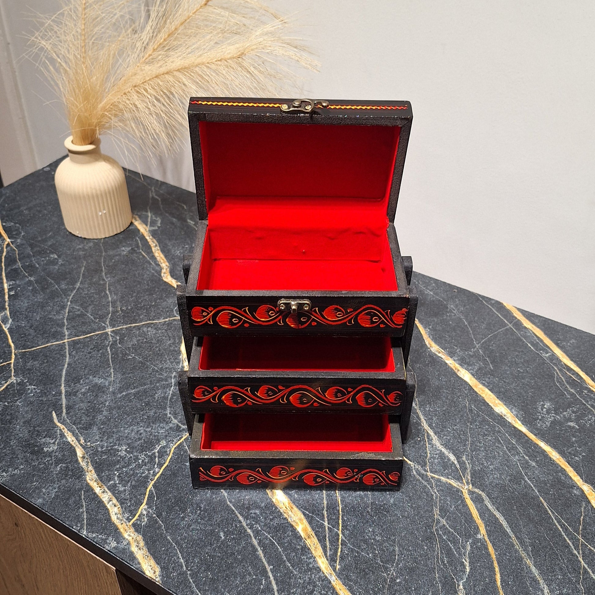 An elegant wooden jewellery holder box crafted to keep your precious pieces organized, safe, and beautifully displayed.